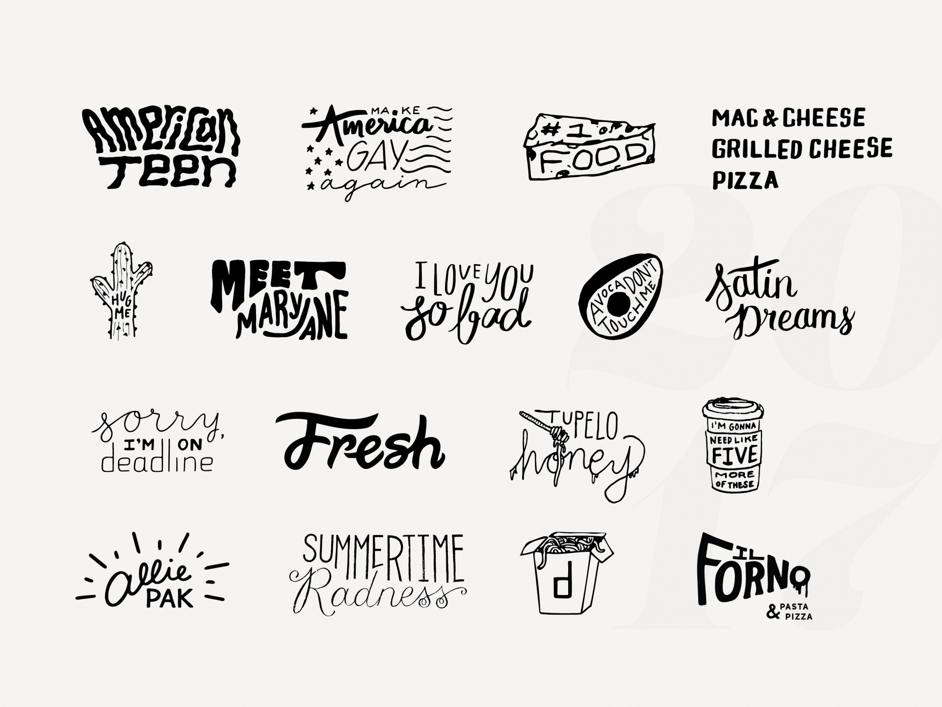 Most of my hand-lettering starts on paper, but it has come to life in the digital world via logotypes, social media graphics, animations, and graphics vectorized for print.